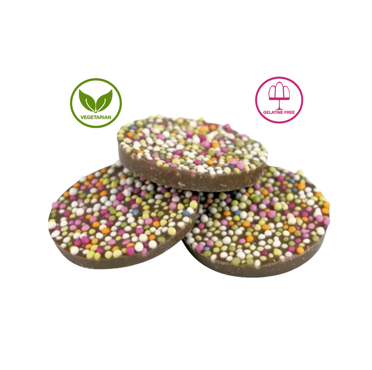 Enjoy these retro dazzling chocolate covered discs, sprinkled with tiny hundreds and thousands