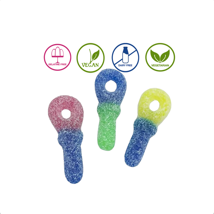Sugar, Glucose Syrup, Wheat Starch, Water, Modified Maize Starch, Acids (Malic Acid, Lactic Acid, Citric Acid), Acidity Regulator (Sodium Malates), Modified Potato Starch, Flavourings, Colours (Brilliant Blue FCF, Curcumin), Vegetable Concentrate (Black Carrot).