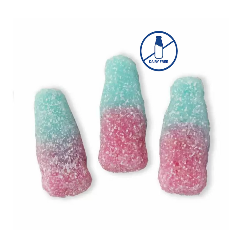 Glucose syrup, sugar, beef and pork gelatine, humectants: sorbitols; corn starch, acid: citric acid; flavourings, vegetable oils (coconut, palm kernel), glazing agents: carnauba wax, beeswax; colours: E133, E171.