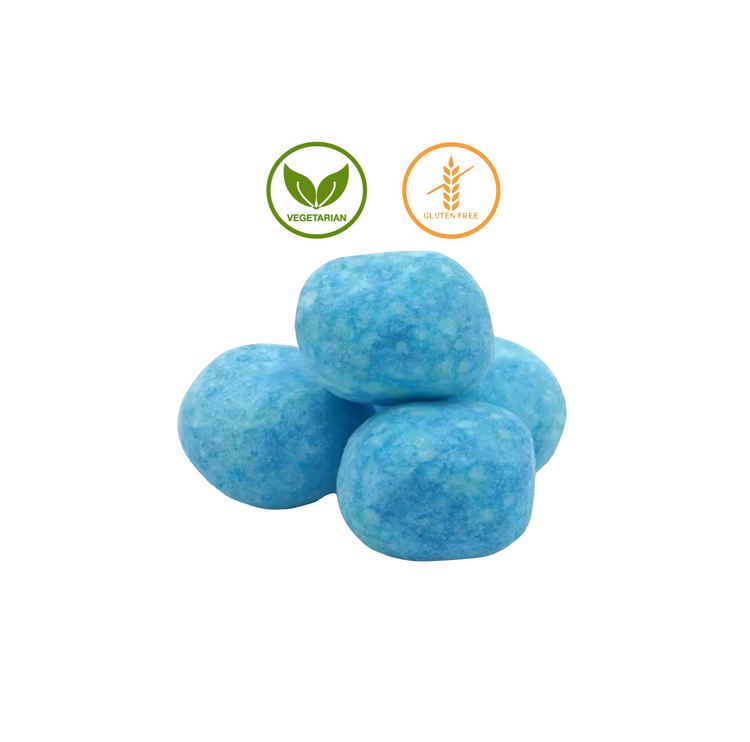 Sugar, Glucose Syrup, Fully hydrogenated Vegetable Fat (coconut), Dextrose, Humectant (Sorbitols), Stabiliser (Gum Arabic), Maltodextrin, Acid (Citric Acid), Starch, Flavourings, Emulsifier (E471), Colour (Brilliant Blue FCF).