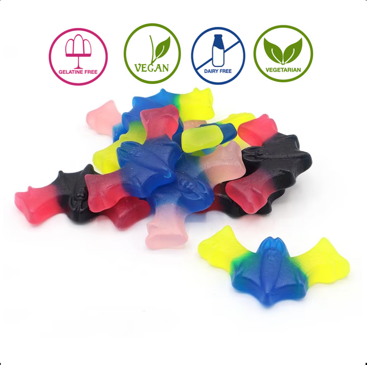 Pouch Filled with Fruit and bubblegum flavour gummy Bat sweets