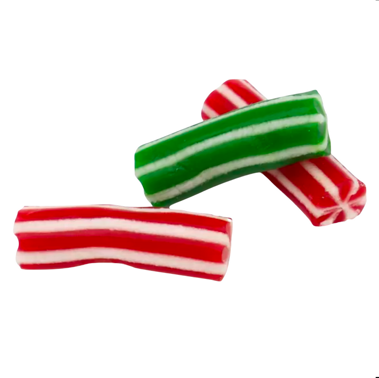Mini Candy Canes Peppermint favoured candy canes Sugar, Glucose Syrup, Water, Flavouring, Colours ( E129, E102, E133)