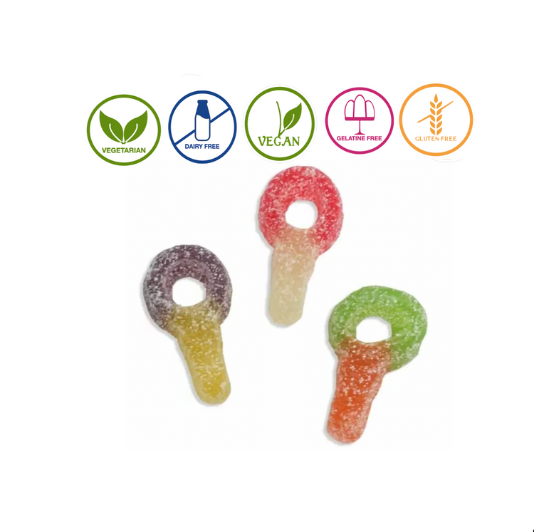 Sugar, Glucose syrup, WHEAT starch, Water, Modified maize starch, Acids(lactic acid, malic acid, citric acid, sodium malate), Modified potato starch, Flavourings, Fruit & Vegetable Concentrates (spirulina, safflower, black carrot,grape),Colours (curcumin, paprika extract).