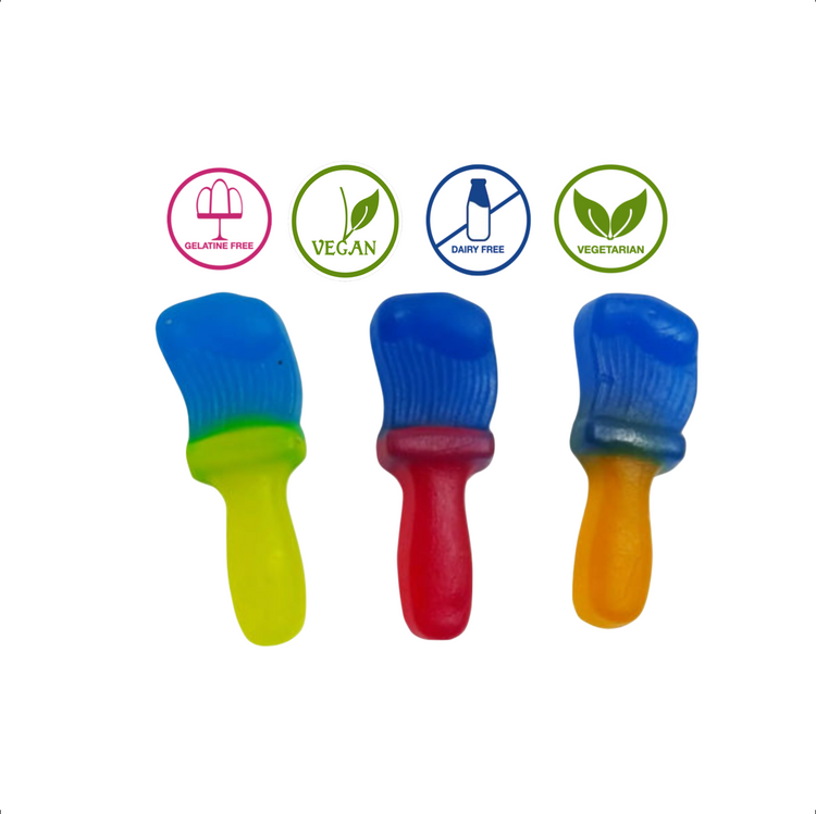 Sugar, Glucose syrup, Wheat starch, Water, Modified maize starch, Modified potato starch, Acids: Lactic acid, Malic acid, Citric acid; Flavourings, Vegetable Oil (Coconut), Glazing agent (Carnauba wax), Colours: curcumin, brilliant blue FCF, paprika extract; Fruit and vegetable concentrate: black carrot.
